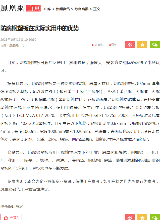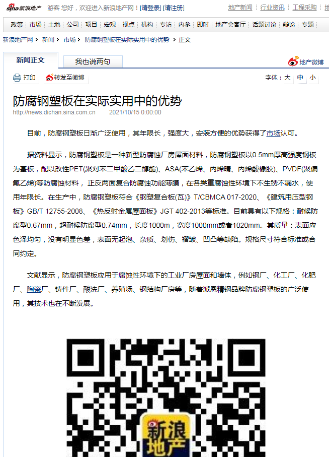 近日,《91短视频推广软件防腐钢塑板在实际应用中的优势》和《91短视频推广软件防腐钢塑板的应用场景》这2篇文章在中华网、中国网·东海资讯、新浪、凤凰网等多家媒体争相报道。
